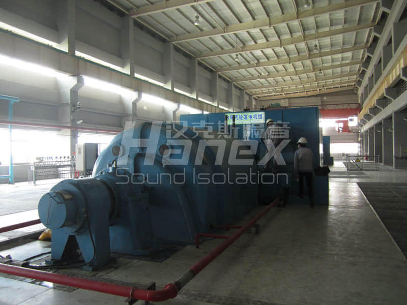 4、 隔聲罩內(nèi)壁距離汽輪發(fā)電機大尺寸元件的長度不小于400mm,隔聲罩與設(shè)備無剛性連接,避免聲橋傳聲。