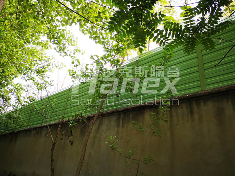 自地面起2m處開始設置屏障板,屏障整體高度為4.5m。吸隔聲屏障主體采用HW125×125×5.4×9mm的H型鋼,H型鋼底部與型鋼基礎焊接,立柱間距3米,屏體與通過鋼構與圍墻相連。